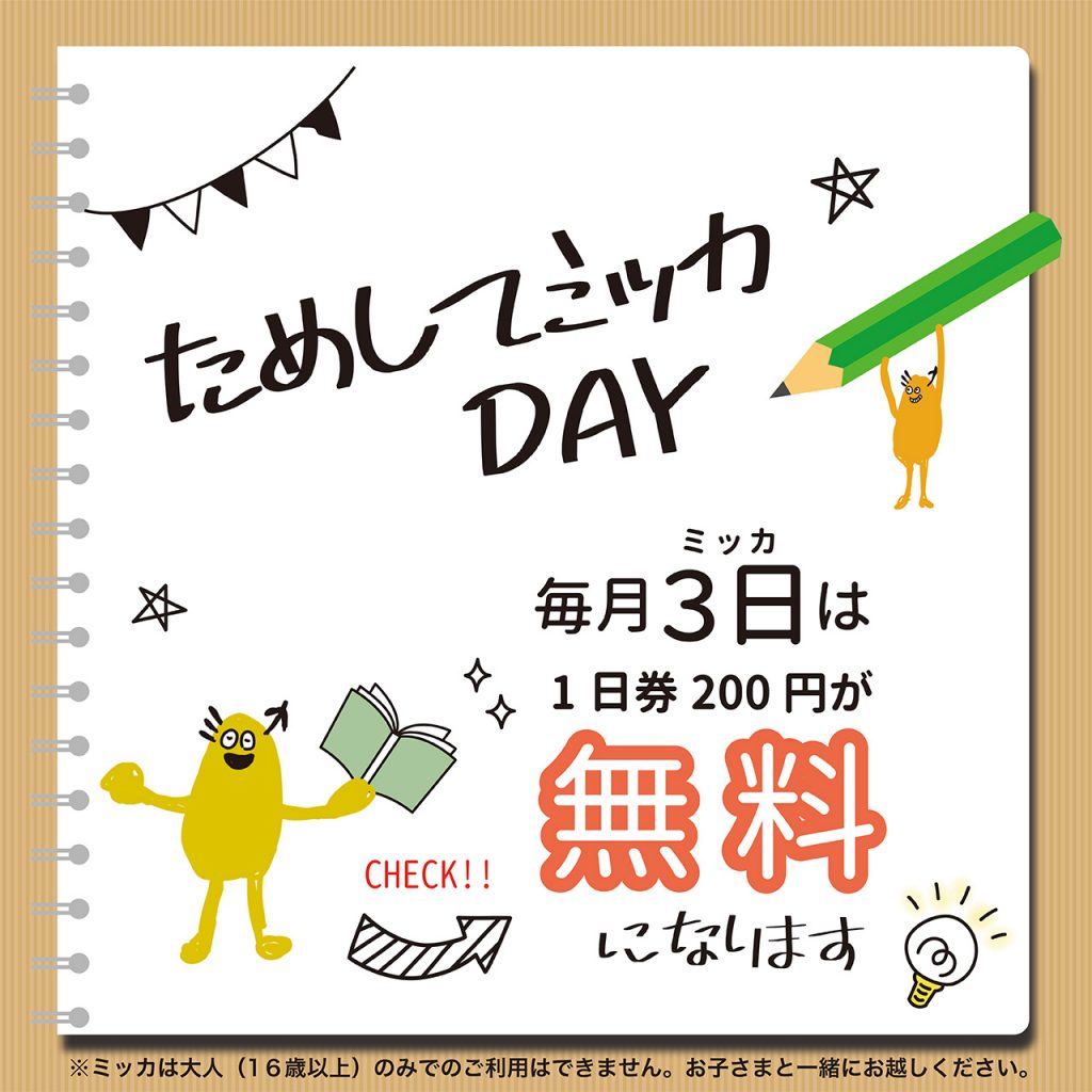 ためしてミッカDAY♩1日券200円が無料!
