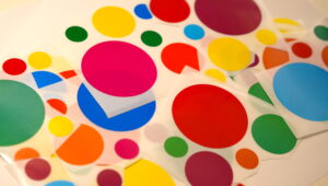 色の違うシールを重ねたり、繋げたりして、不思議な模様ができるかも?